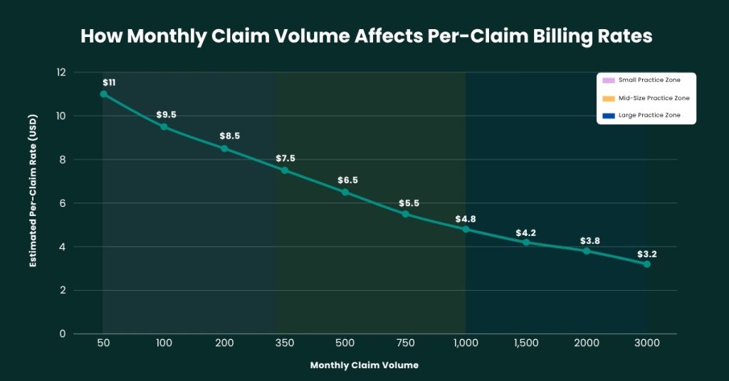 | Practice Type | Est. Monthly Claims | Per-Claim Rate | Est. Monthly Cost |