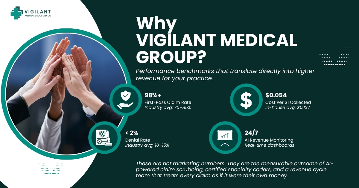 Vigilant Medical Group was built precisely for this problem. It is not a generic billing clearinghouse. It is a specialized, AI-enhanced revenue cycle management partner that has been trusted by healthcare providers across the United States to do one thing exceptionally well: ensure that every hard earned dollar through patient care is actually collected.