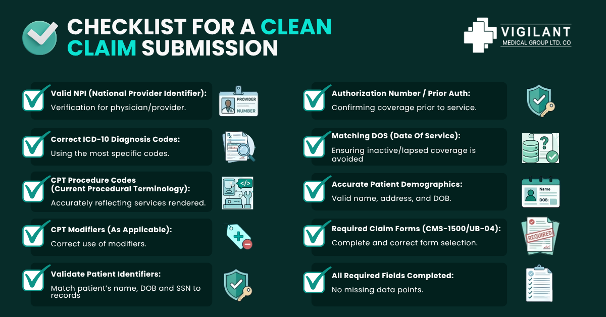 | Incorrect Patient Information | Wrong DOB, insurance ID, or address on the claim | Immediate denial — resubmission delays of 30–60 days | Very High |